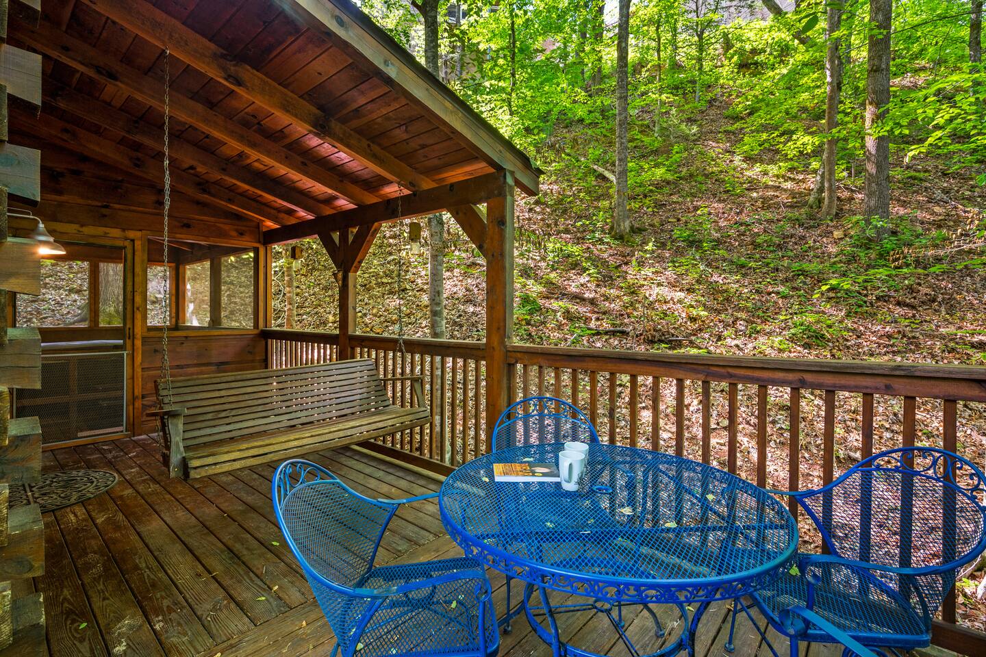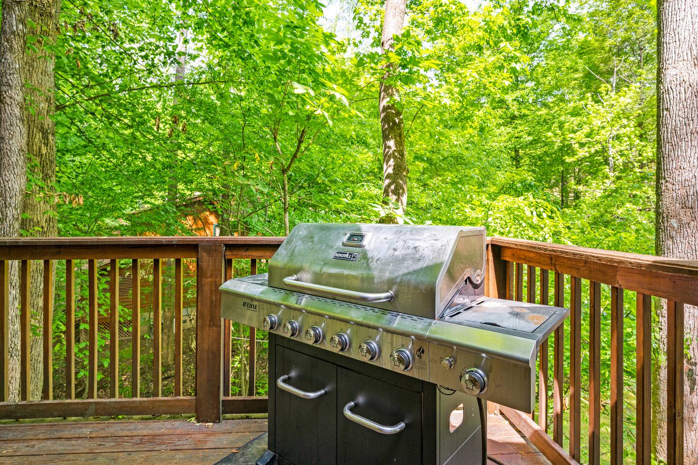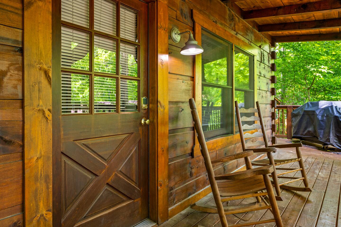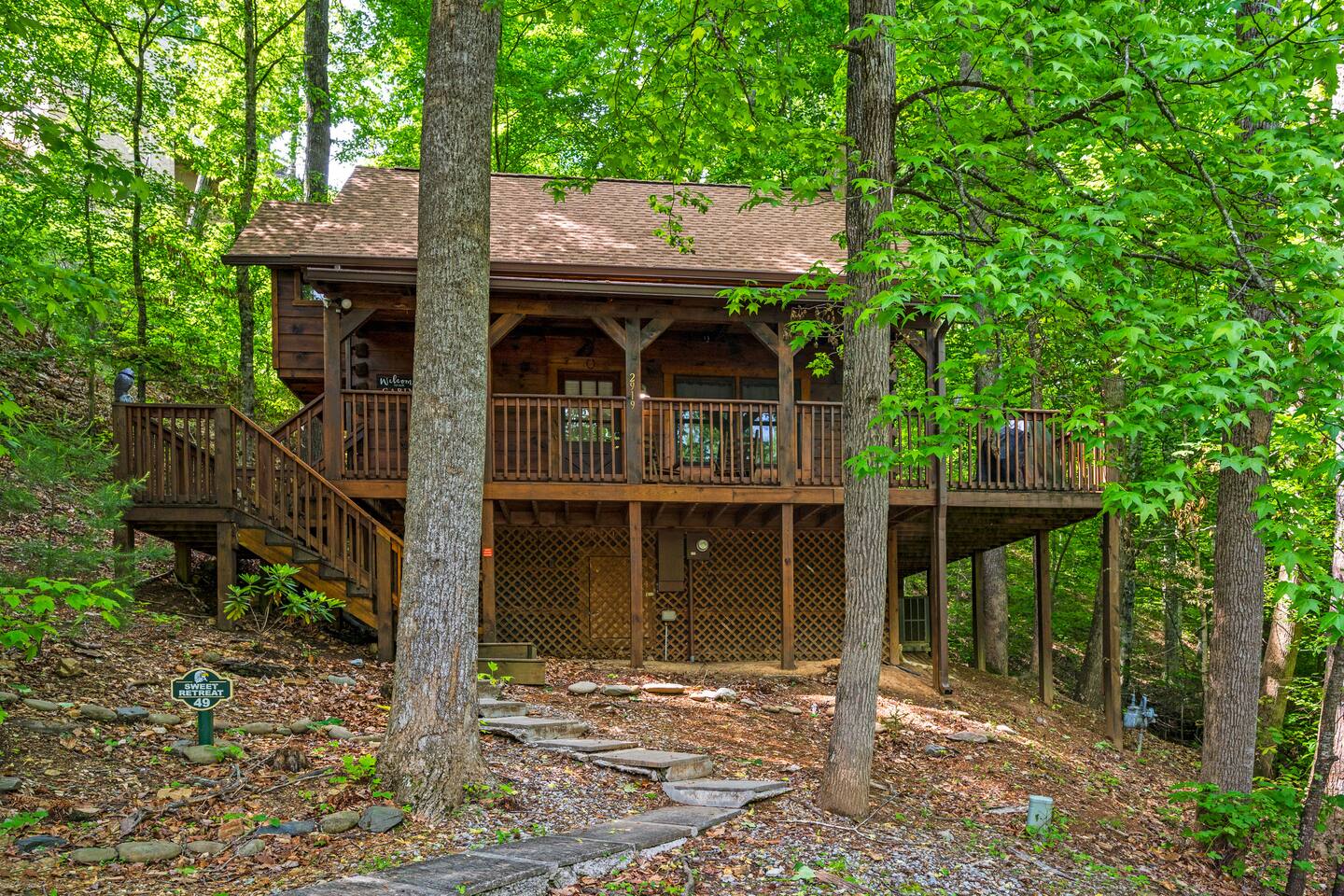 Sweet Retreat — Cozy, Private Cabin Near Town Nestled at the end of Peregrine Way among the trees, Sweet Retreat feels tucked away while still being just minutes from town. As one guest put it: “You’re close to town but tucked away a bit — you don’t even really feel like there are any neighbors.” Highlights - Sleeps up to 4 guests — ideal for couples or small families - Full access to the entire cabin and amenities - Private screened-in porch with a hot tub - Loft bedroom with king bed, ensuite bathroom and a jacuzzi tub - Wraparound deck on three sides with porch swing, rocking chairs, and outdoor dining - Natural gas grill (no propane to refill) - Equipped kitchen, high-speed Wi‑Fi, cable and LG smart TV - Cozy living room with cathedral ceiling, queen sleeper sofa, loveseat and seasonal gas fireplace - Seasonally available outdoor shared pool with sun loungers Special touches - “Whootie” — an owl by the front steps — helps deter woodpeckers and adds a bit of cabin charm. - During the Christmas season, enjoy the Winterfest lights along Pigeon Forge’s parkway. Come relax with morning coffee on the deck, cook out on the gas grill, and finish the day soaking in the private hot tub — everything you need for a peaceful, easy getaway.